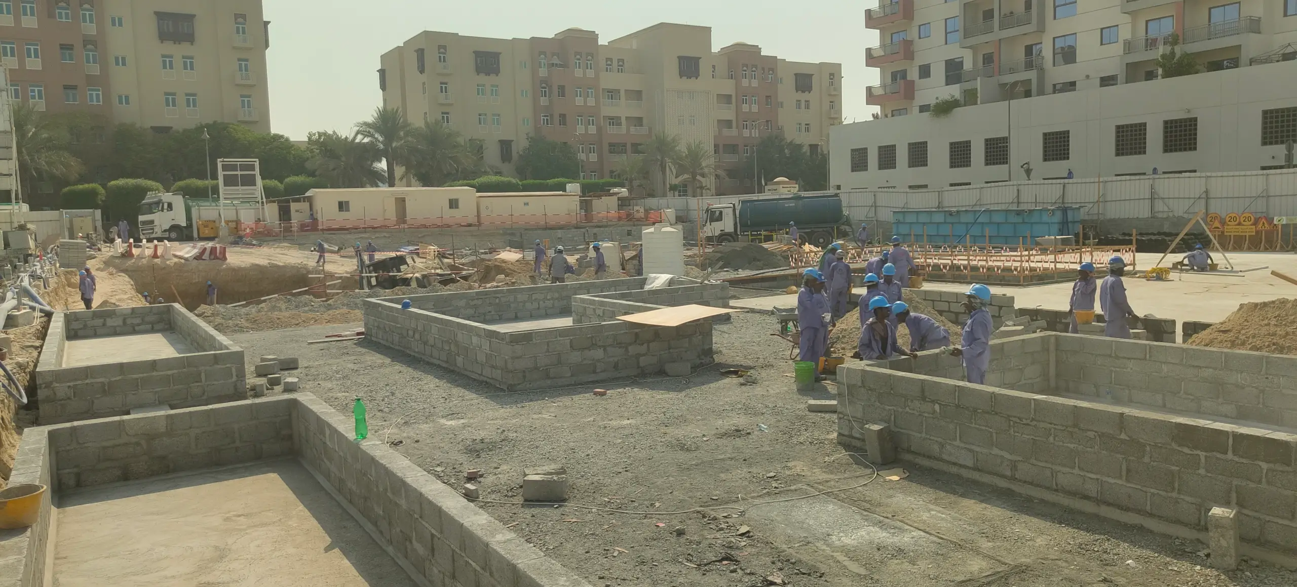 - خزان المياه الأرضي وغرفة المضخات (تحت الأرض) – اكتمل التنفيذ بنسبة 80%.