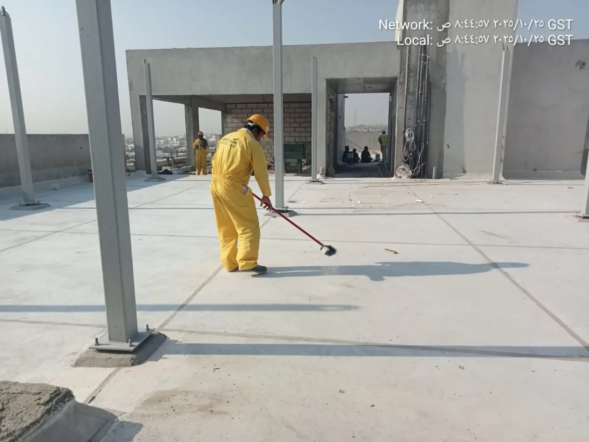 - تم الانتهاء من صب طبقة حماية العزل في المرحلة الأولى.