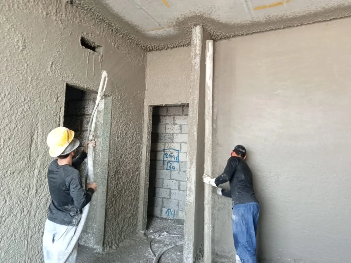- أعمال اللياسة للجدران – اكتمل التنفيذ بنسبة 95٪
