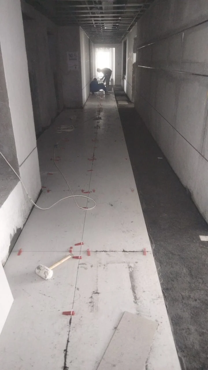 - تركيب بلاط الأرضيات – اكتمل التنفيذ بنسبة 90٪