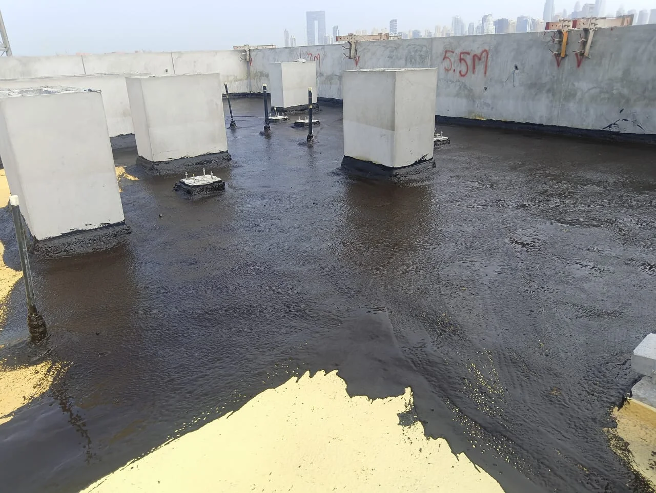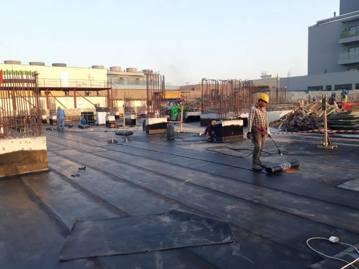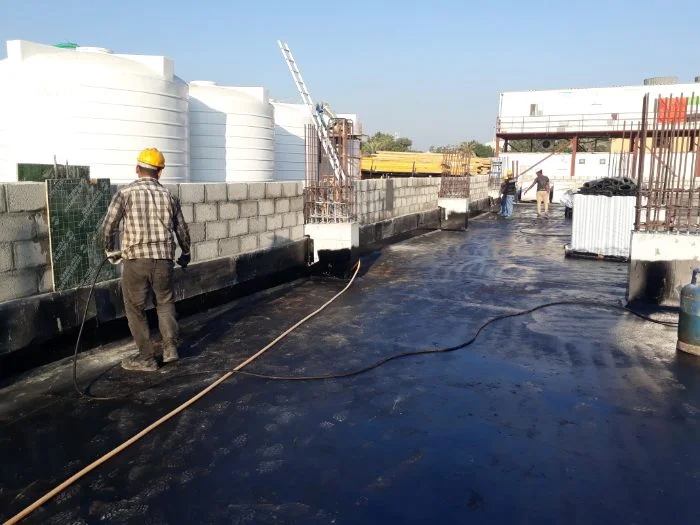 - تم الانتهاء من المرحلة الأولى لعزل اللبشة الرئيسية (فوق الخرسانة العادية).