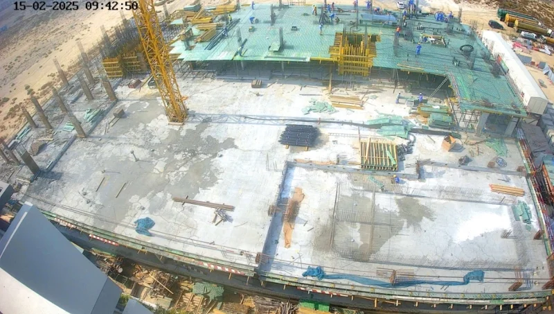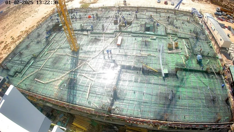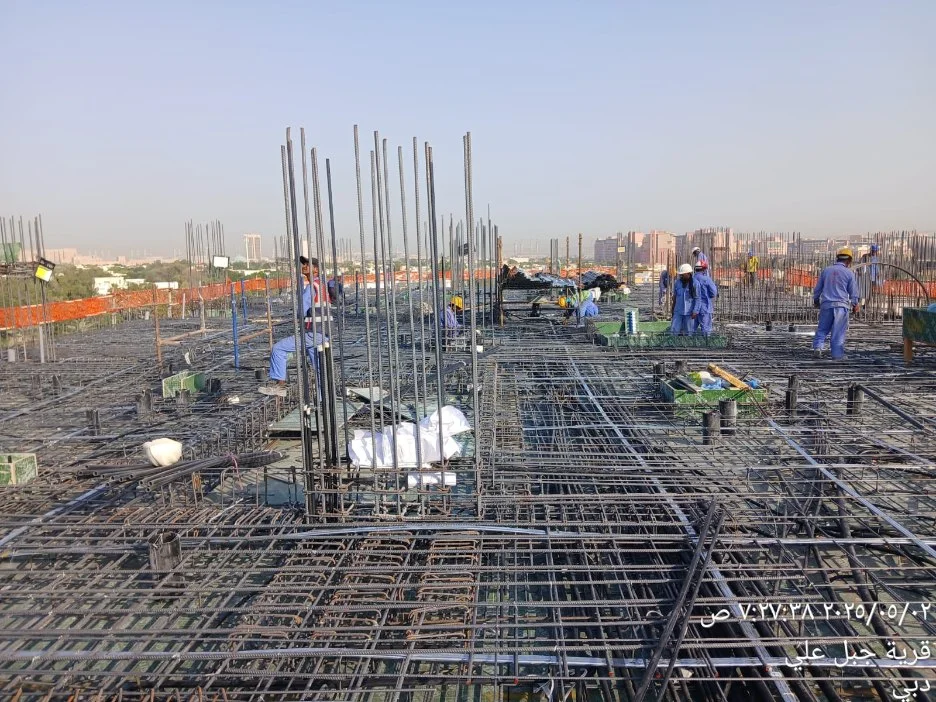 - تم الانتهاء من أعمال التسليح لللبشة الرئيسية، وبئر المصعد، وغرفة المحطة الكهربائية.