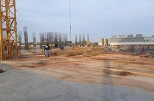 - أعمدة الطابق الأرضي والجدران الأساسية، اكتمل التنفيذ بنسبة 60٪