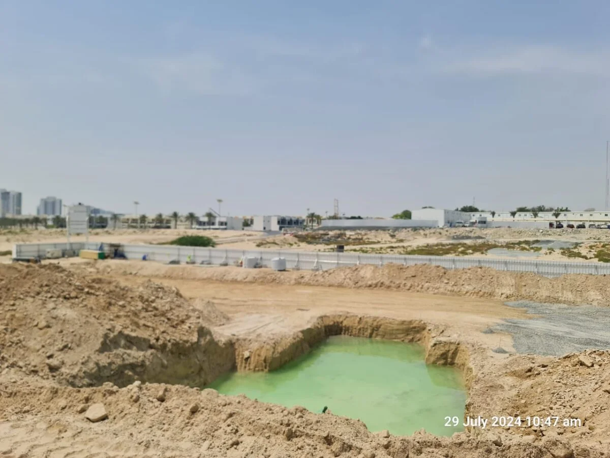 - تم تركيب نظام نزح المياه، وجارٍ تنفيذ عملية النزح.