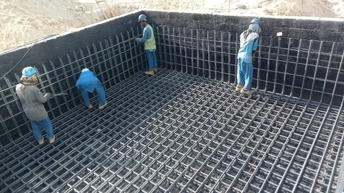 - تم الانتهاء من تسليح لبشة غرفة المضخات وخزان المياه تحت الأرض.