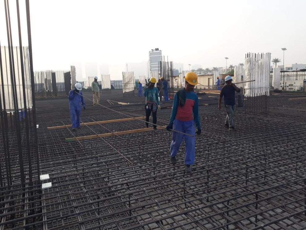 - أعمال تسليح البلاطة، اكتمل التنفيذ بنسبة 30٪