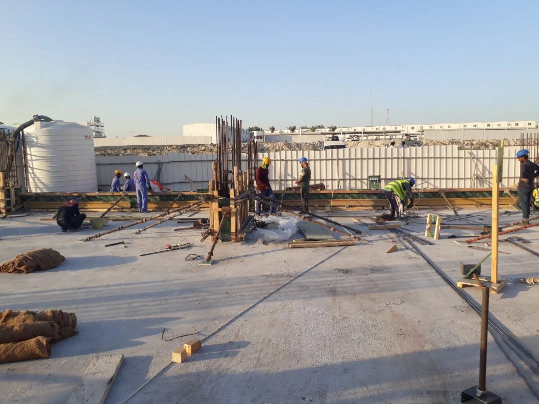- فك قوالب الأعمدة والجدران وأعمال المعالجة، اكتمل التنفيذ بنسبة 20٪