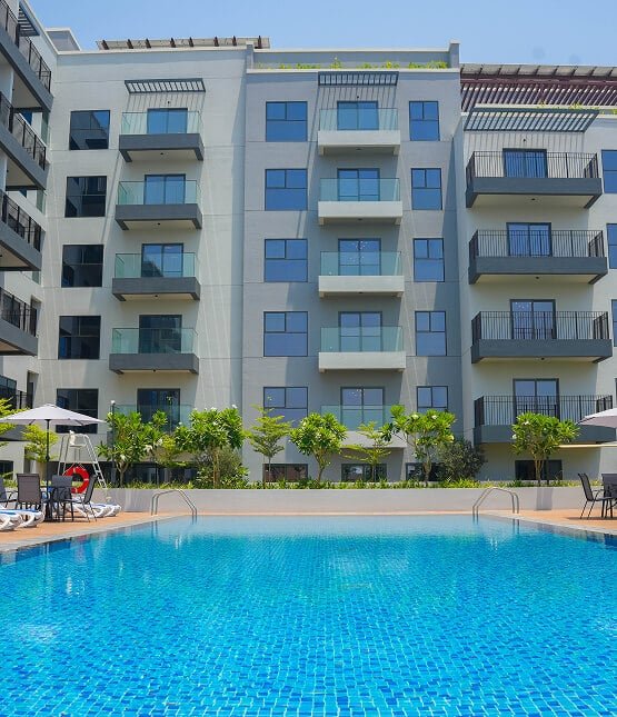 Mid-rise residences that combine sustainability, light, and family comfort. Retail on the ground floor, lush green surroundings, and smart living design.
