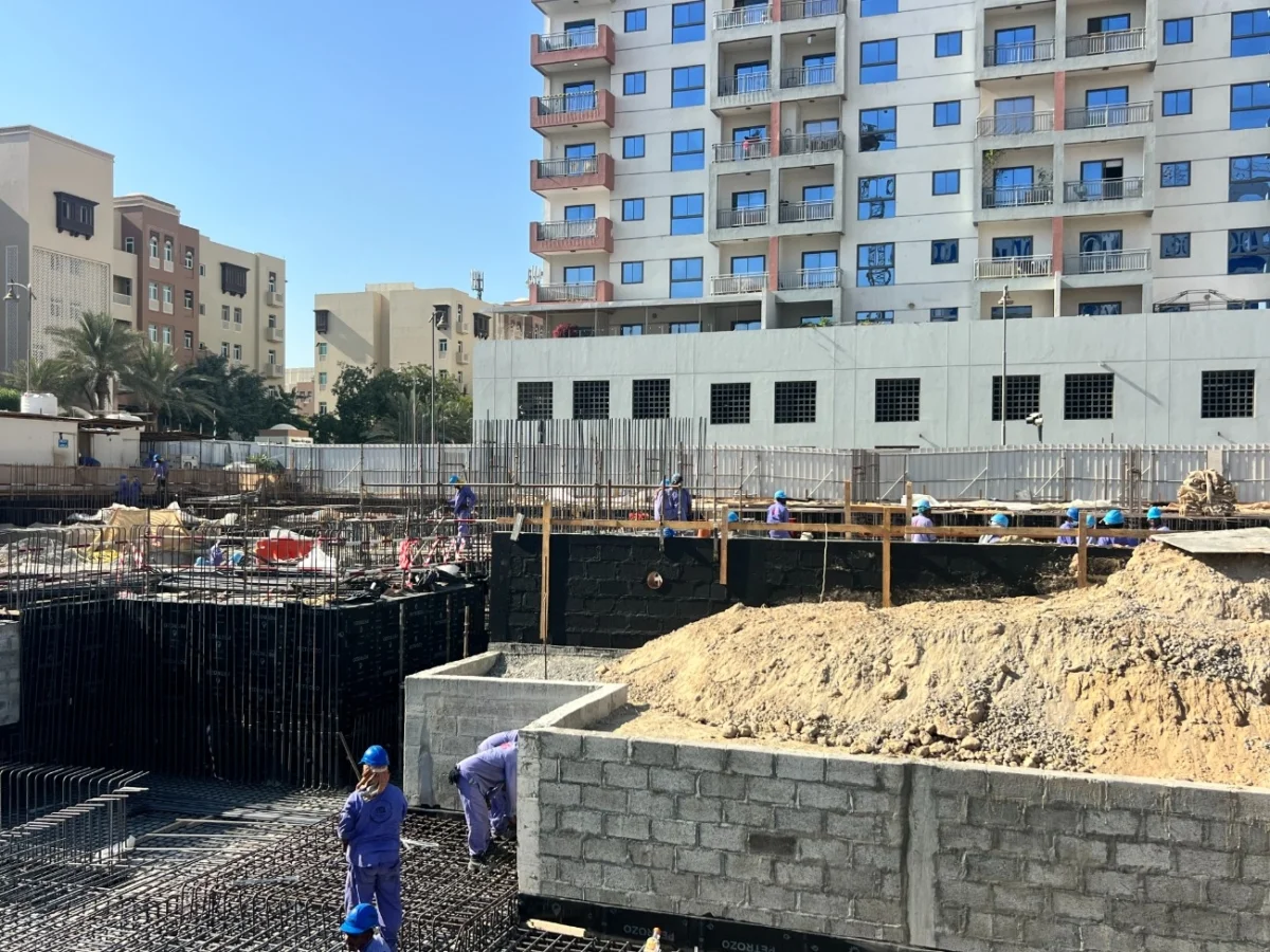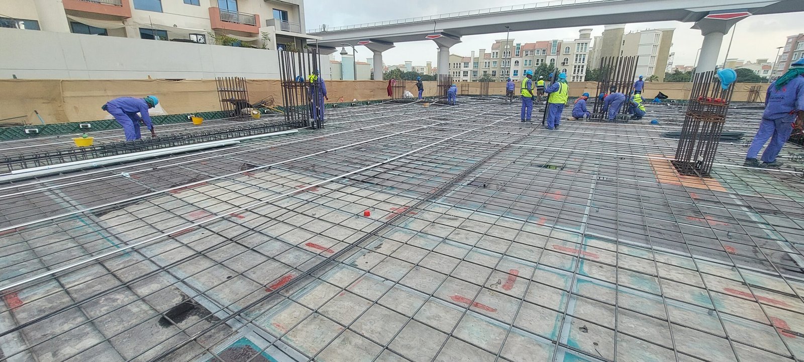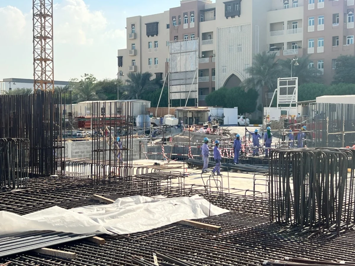 - Steel reinforcement work for raft – 30% completed