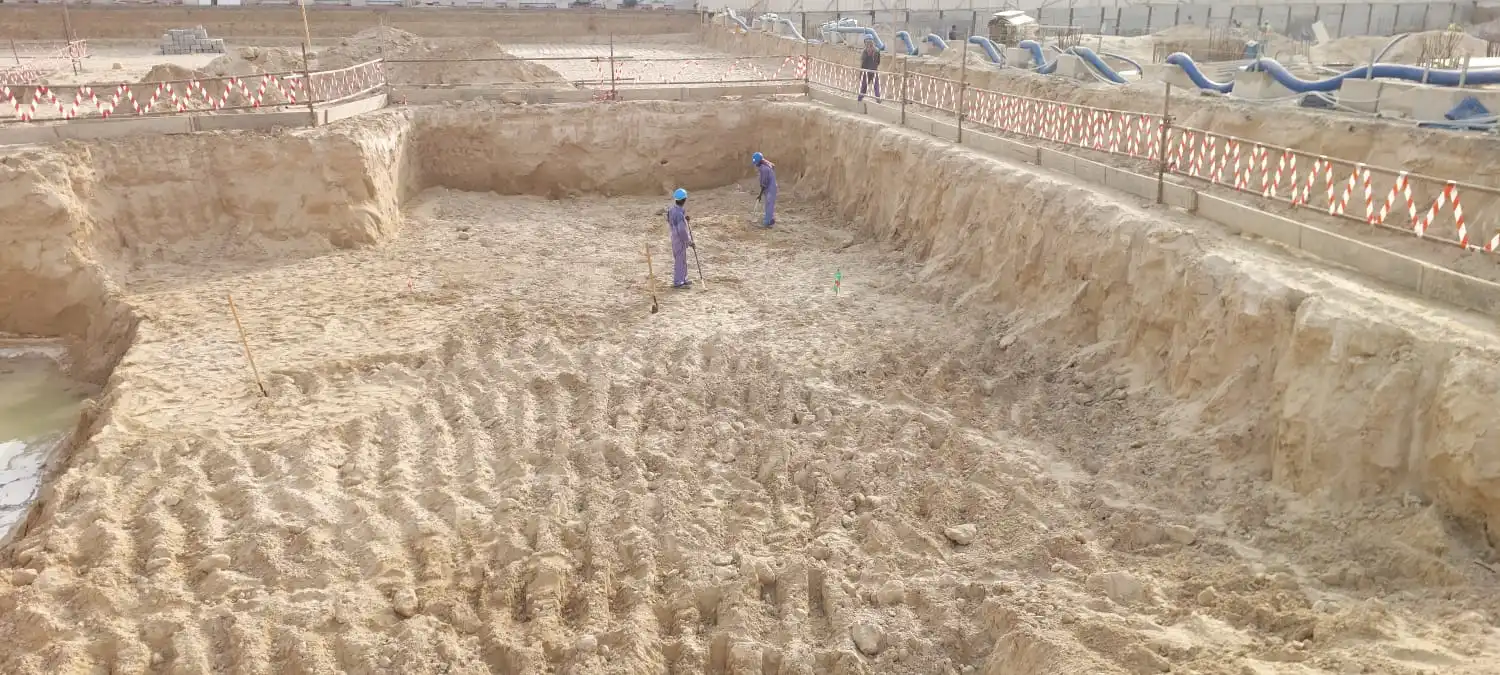 - Excavation for main area, 100% completed.
