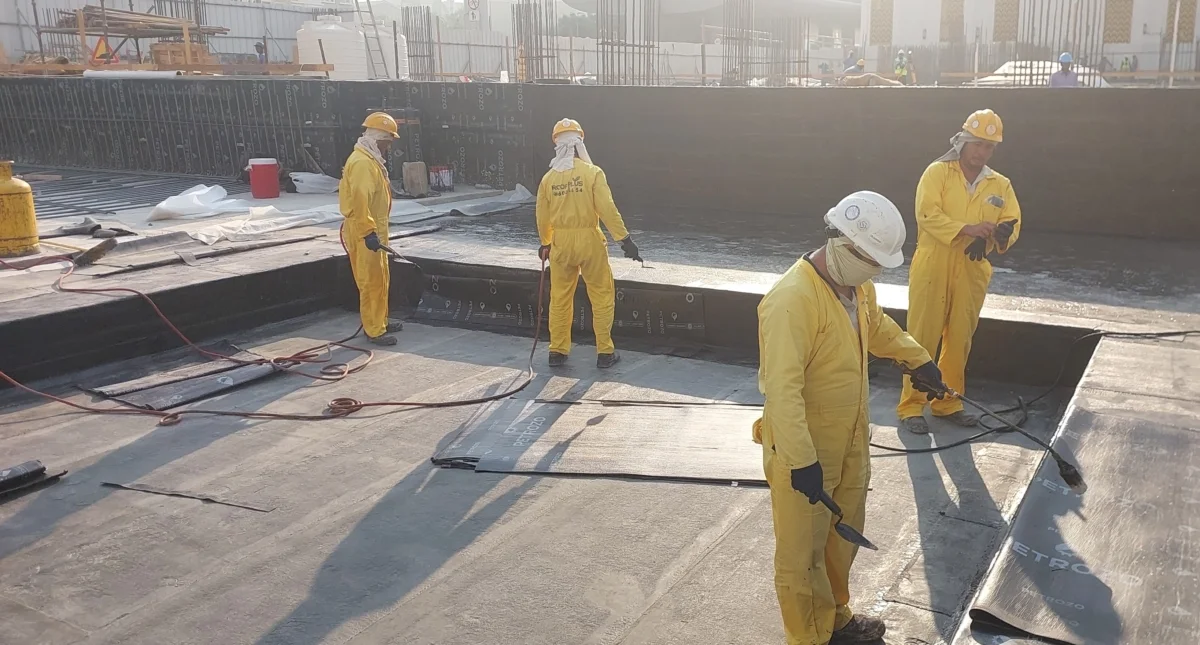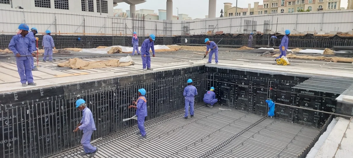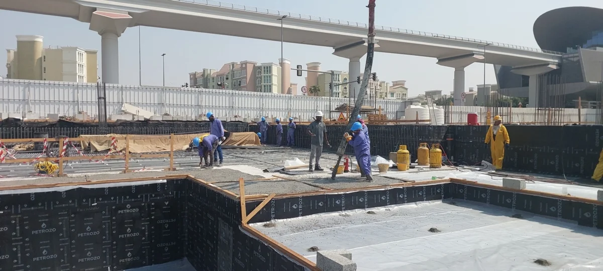 - Waterproofing membrane below main raft foundation – 100% completed