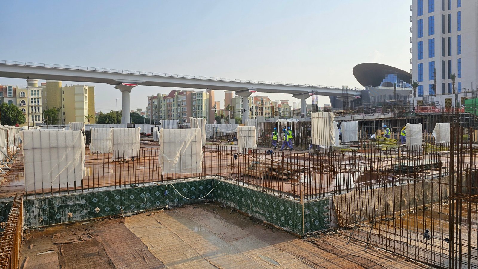 - Waterproofing membrane below main raft foundation – 70% completed