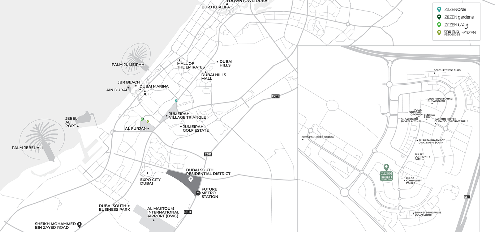 Positioned within Dubai South’s residential district, the project sits close to Expo City Dubai, Al Maktoum International Airport, and emerging commercial hubs. The Planned Metro connectivity strengthens long-term access across the city.