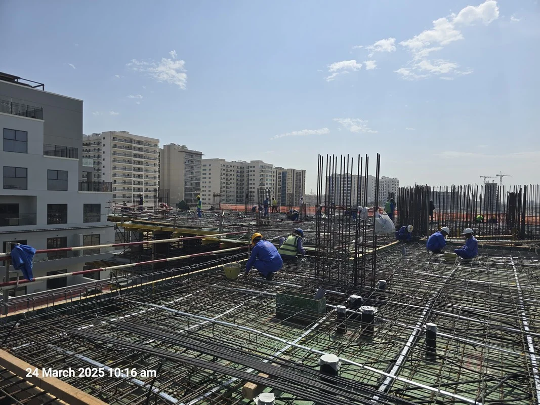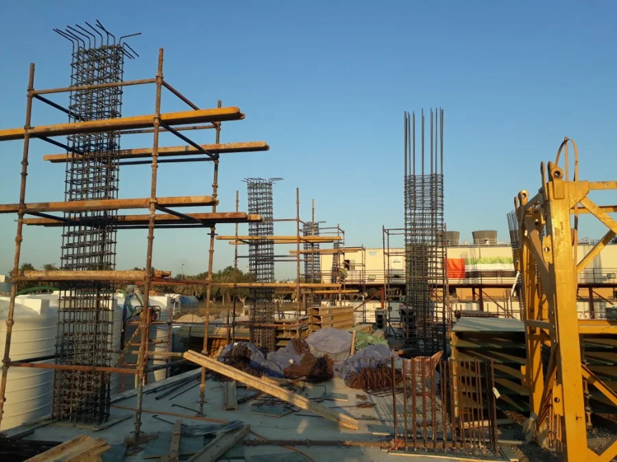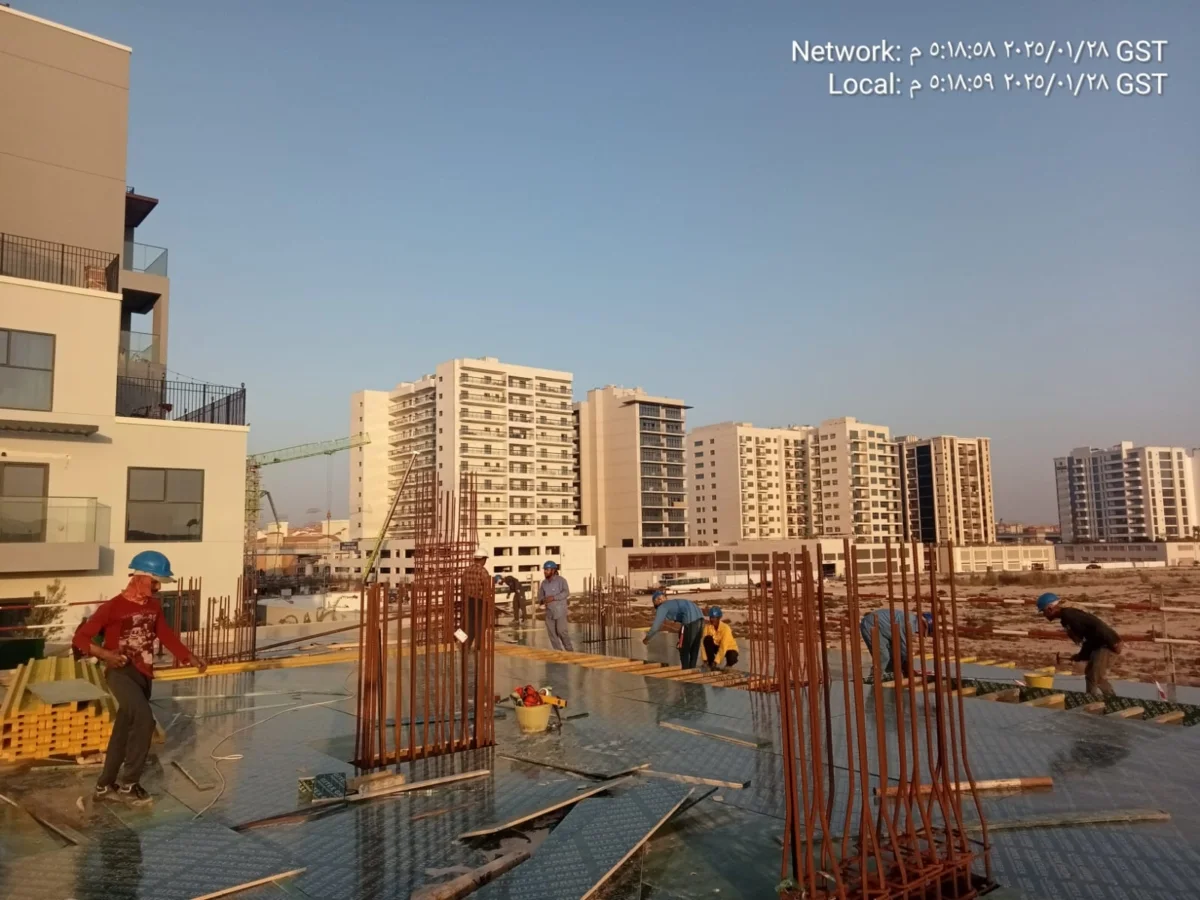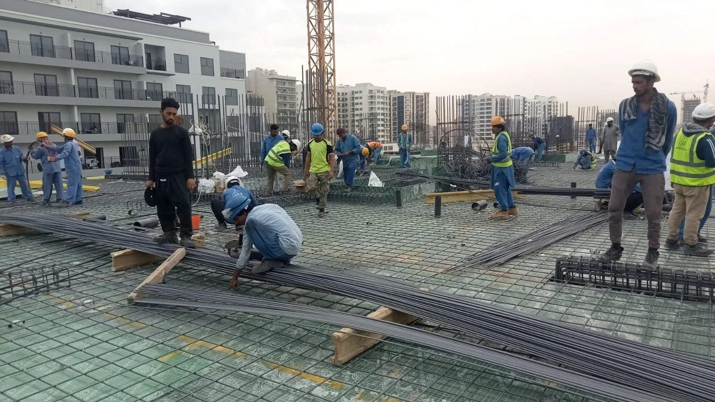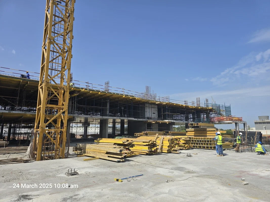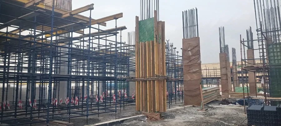 - Column and wall casting on 3rd floor slab, 20% completed.
