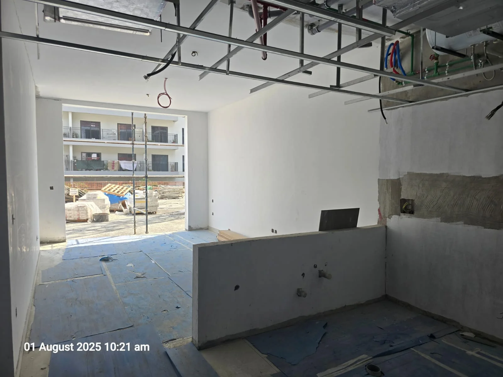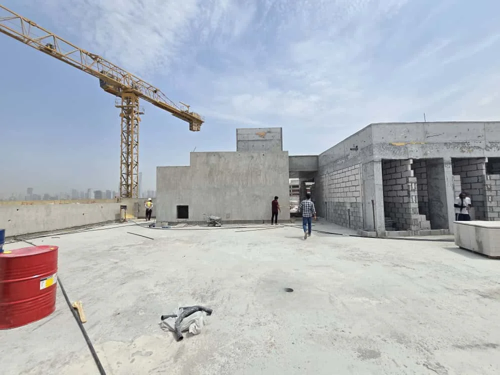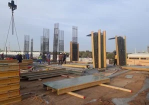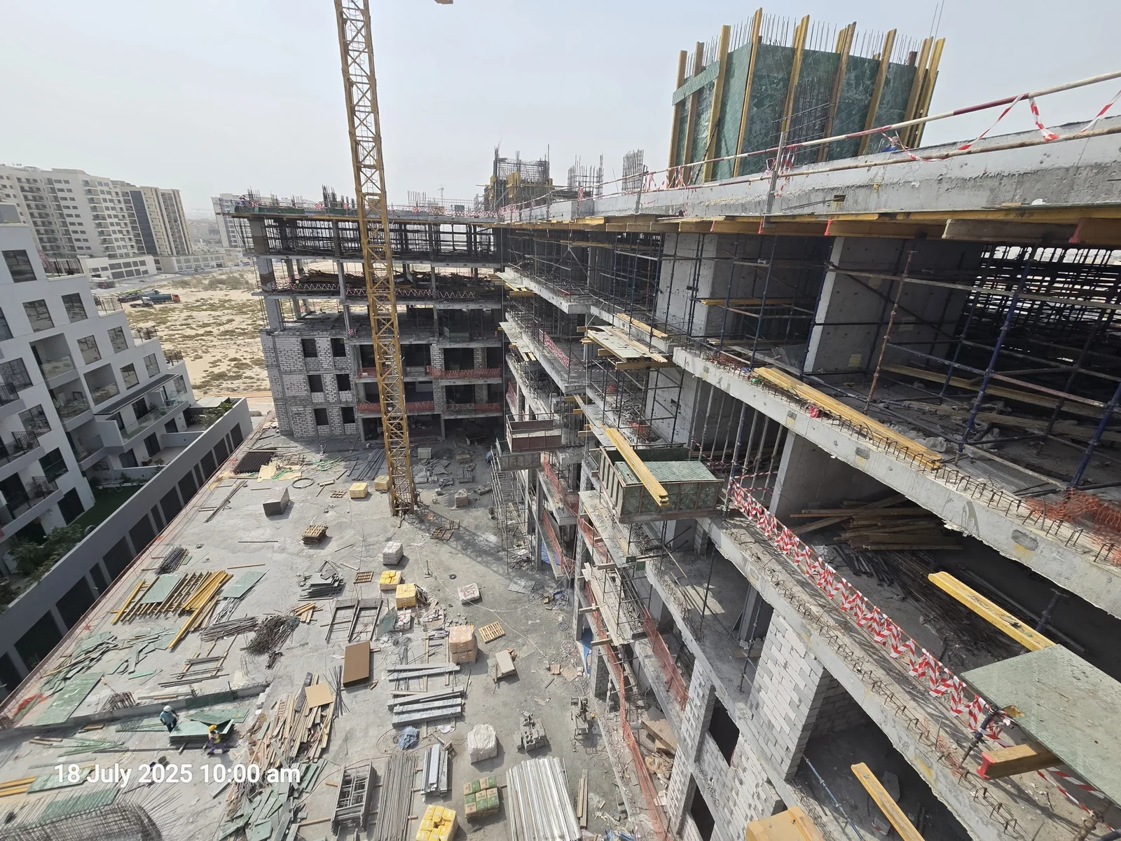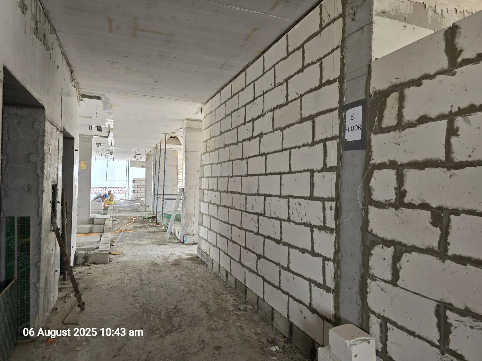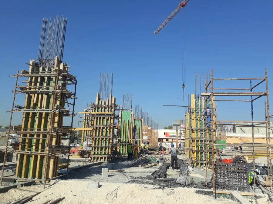 - Column and wall casting on 3rd floor slab, 20% completed.