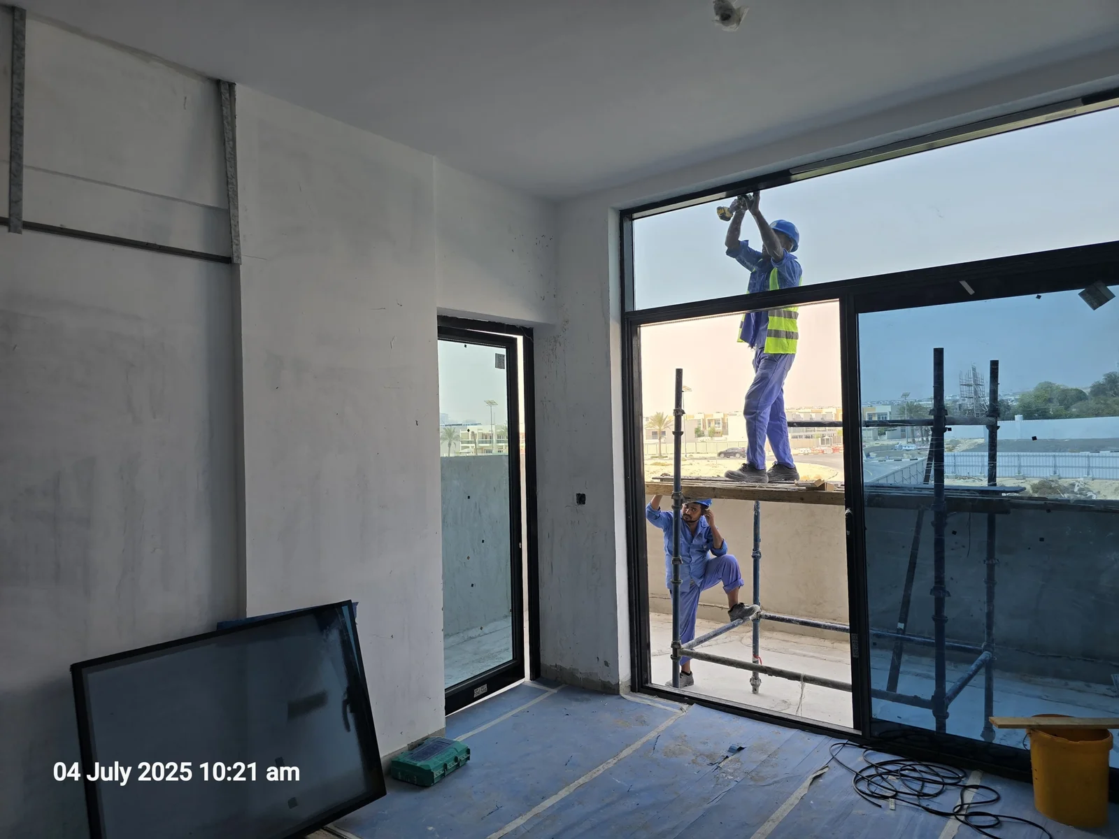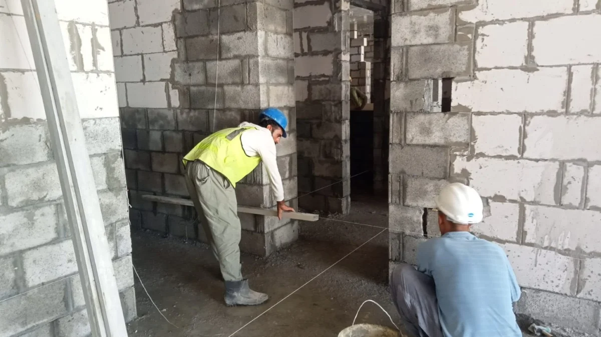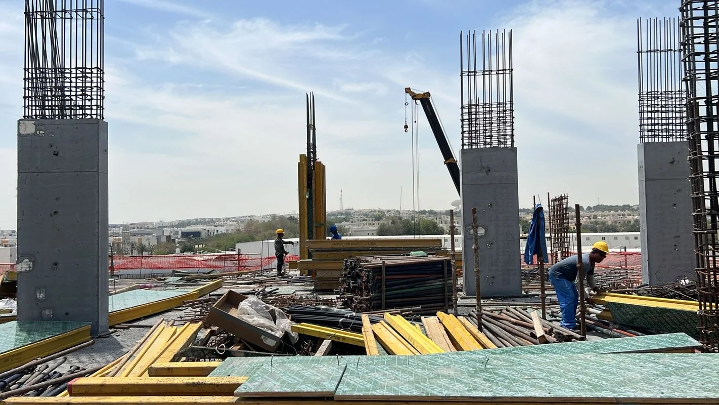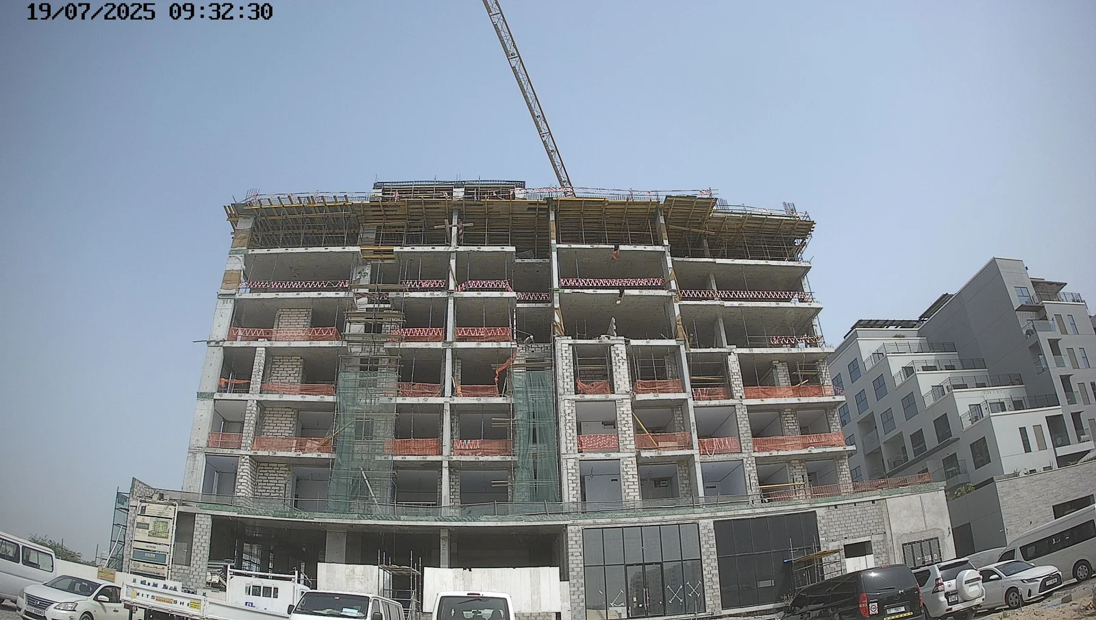 - Column and wall casting on 3rd floor slab, 20% completed.