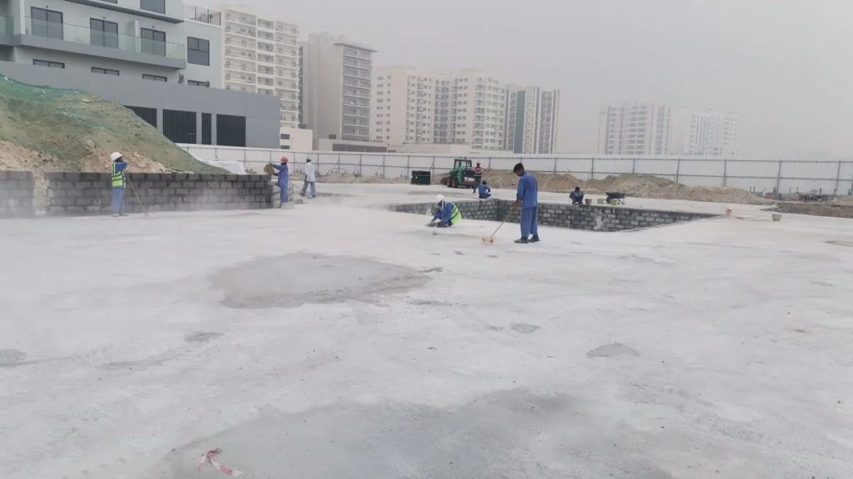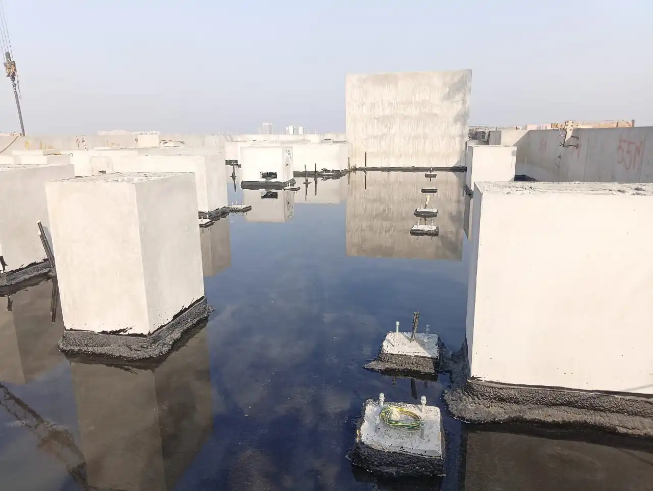 - Waterproofing slab of water tank, pump rooms, Zone 1, 100% completed.