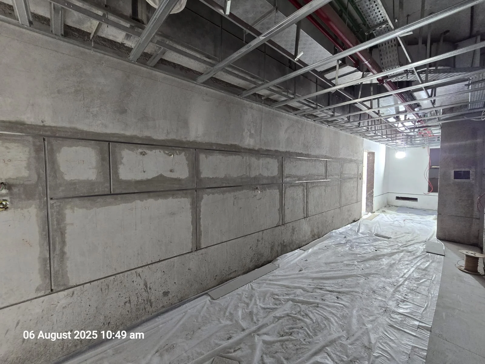 - 1st phase waterproofing for raft (above PCC) and retaining walls completed.
