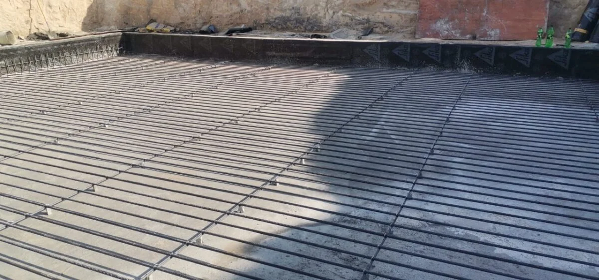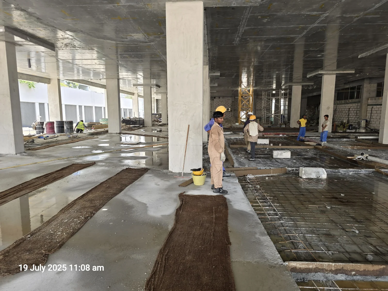 - 1st Phase of Waterproofing for Main Raft (Above PCC) Completed.