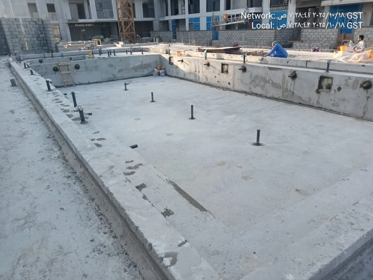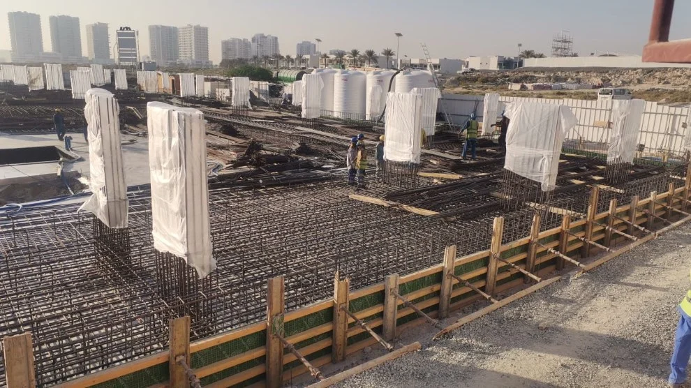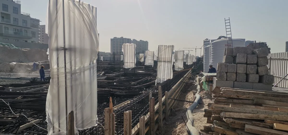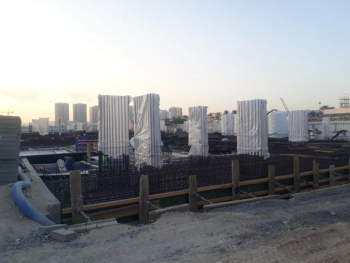 - Waterproofing isolated footing & neck columns, Zone 2, 45% completed.