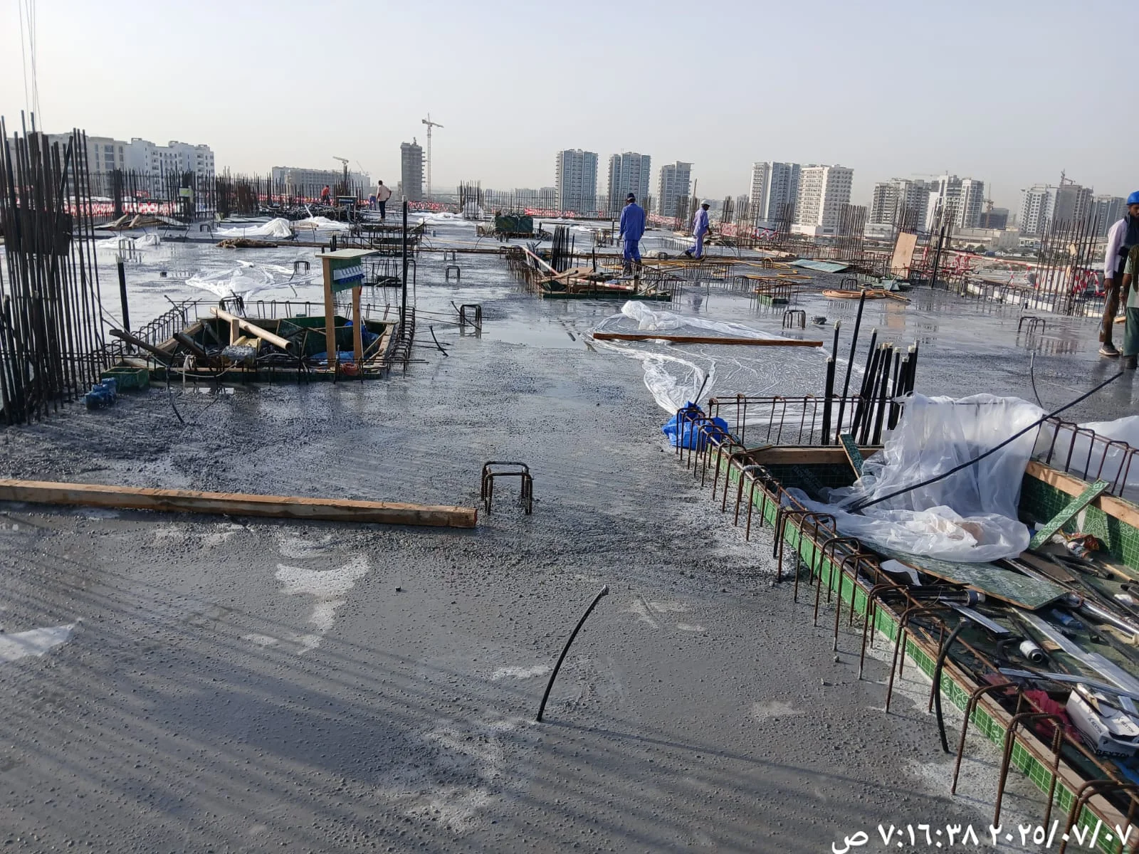 - Casting slab of water tank, pump rooms and staircase, Zone 1, 100% completed.