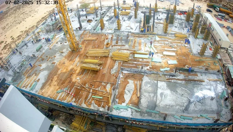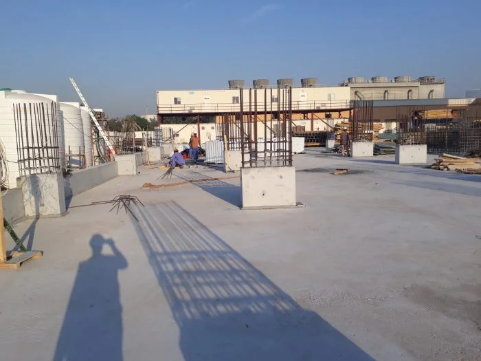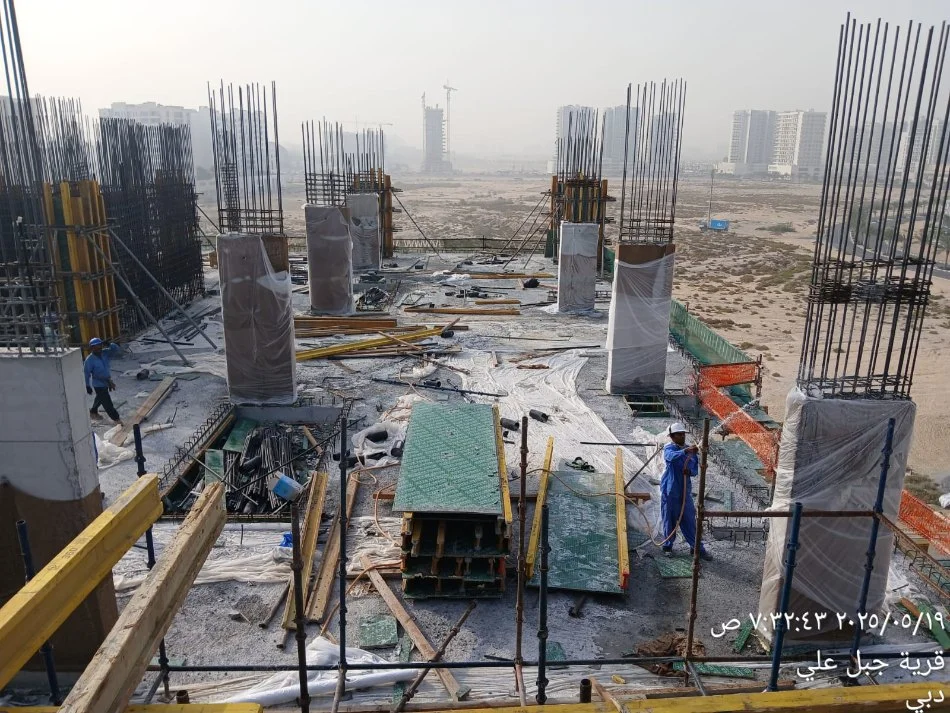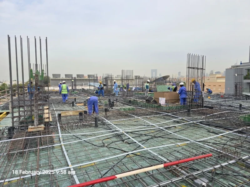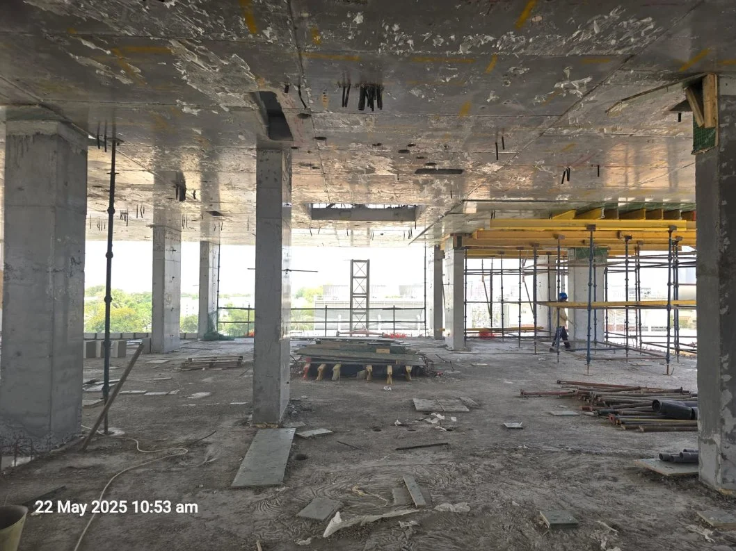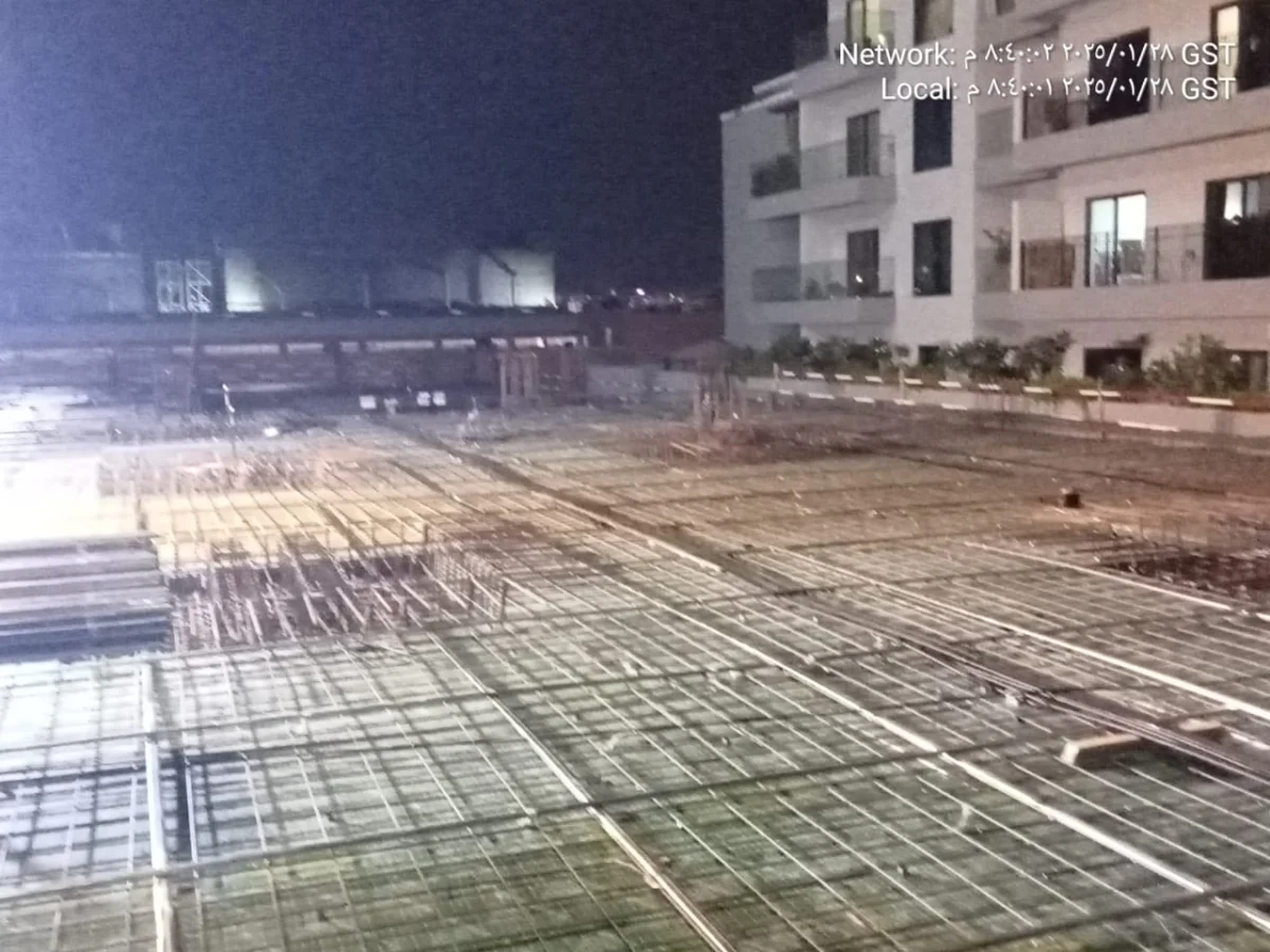 - Stressing & patching for 2nd floor slab, 100% completed.