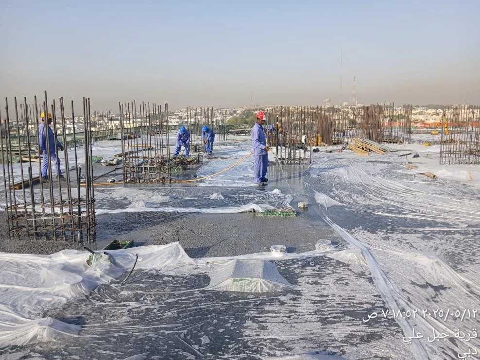- 2nd phase waterproofing for main raft top, Zone 1, 100% completed.