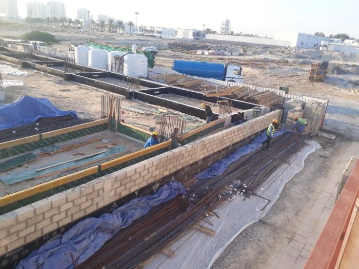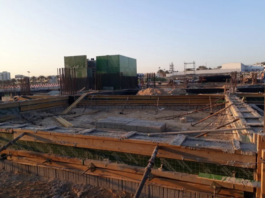 - 1st Phase Waterproofing for Raft (Above PCC) and Retaining Walls 50% Completed.